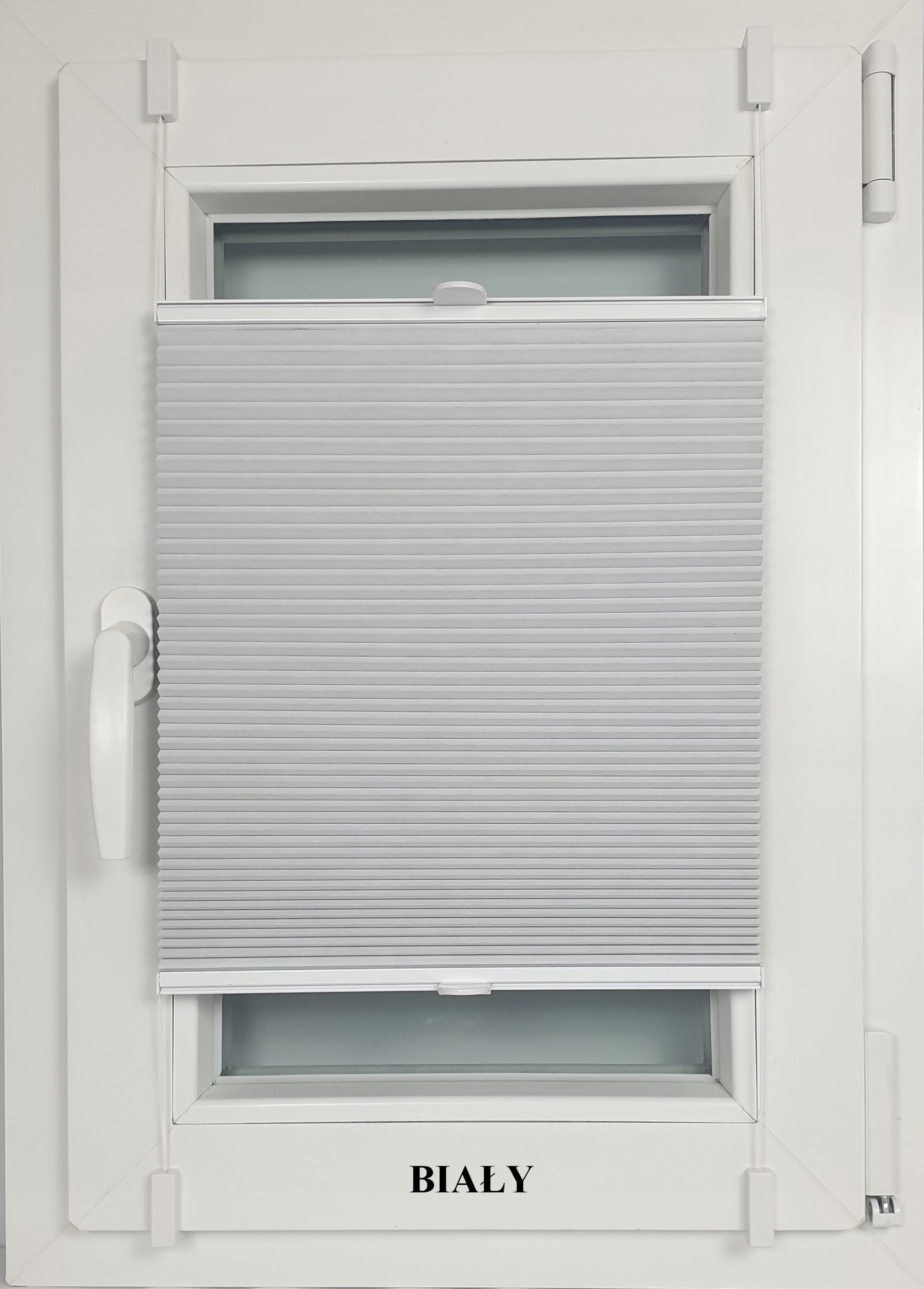 • wysokość plisy pionowa strzałka (wysokość otwartego skrzydła okiennego).